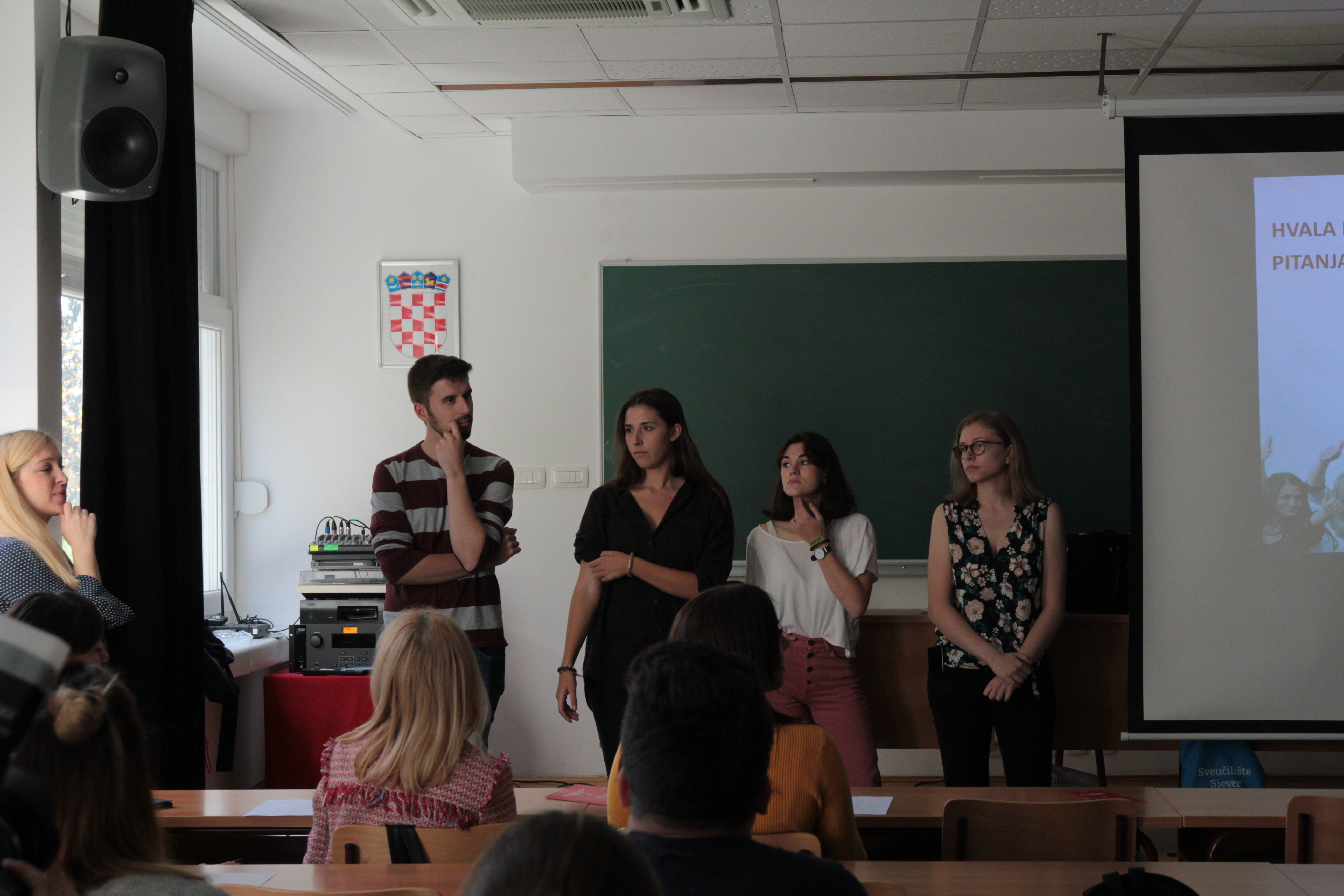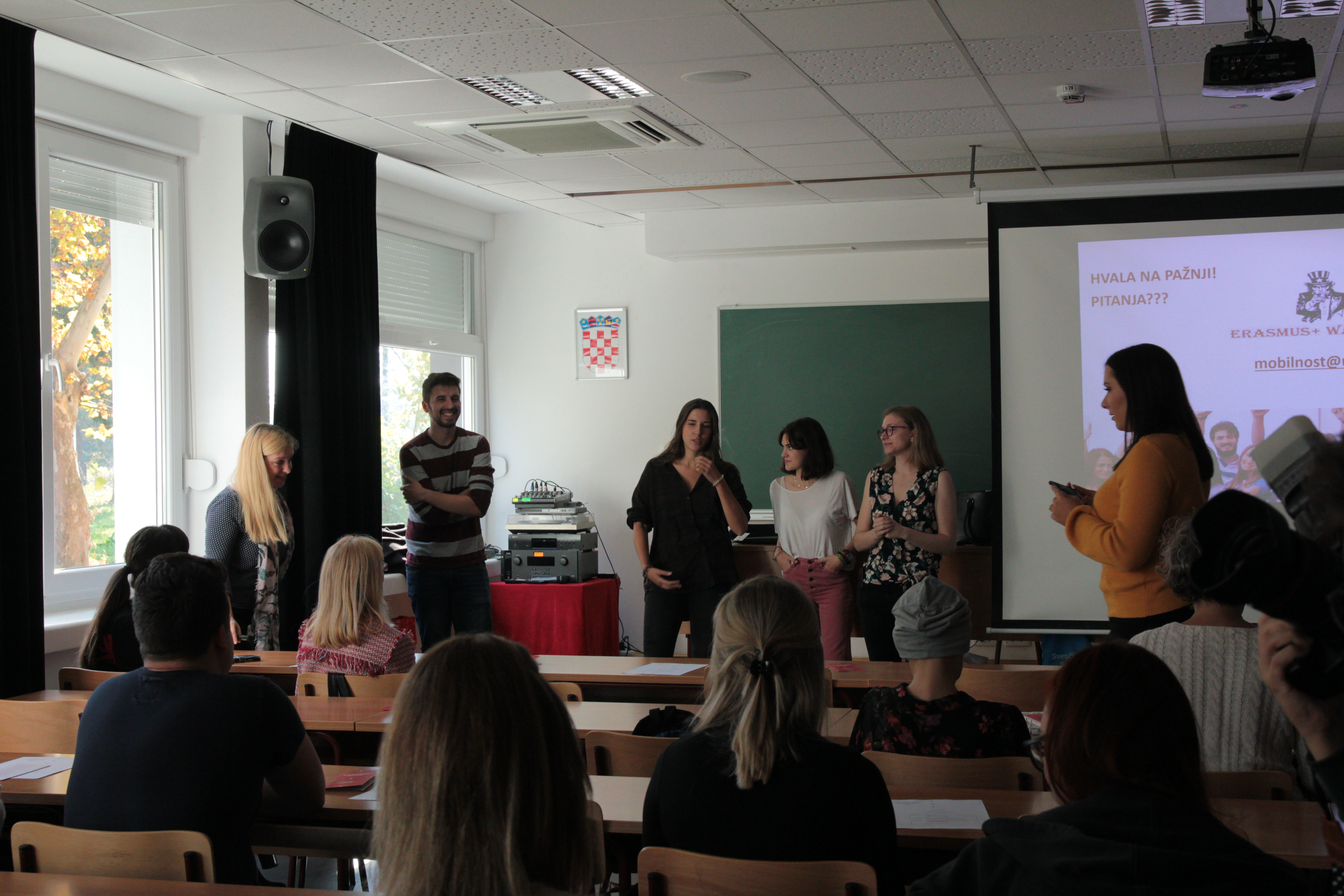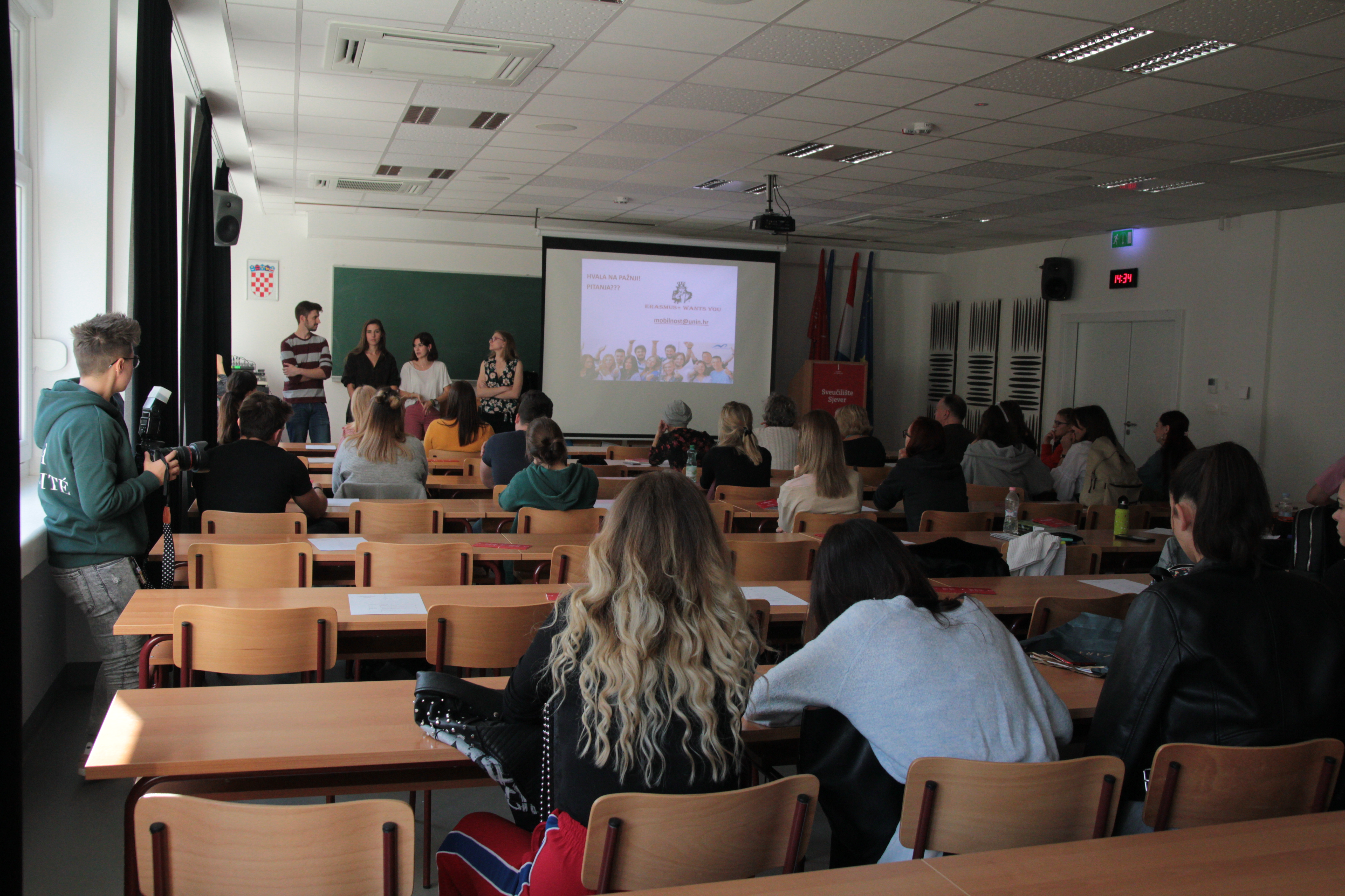 Uvodnu riječ održala je izv. prof. dr. sc. Anica Hunjet, prorektorica za znanstveno-umjetički rad i međunarodnu suradnju, a uvodne informacije s nama su podijelile Marina Klarić i Tina Lukčić iz Ureda za međunarodnu suradnju. Studenti su također poslušali iskustva „iz prve ruke“ studenata koji su putem Erasmus+ programa doputovali iz Madrida na Sveučilište Sjever. Uz ostalo, izv. prof.dr.sc. Petar Kurečić održao je kratko predavanje o Erasmus+ mobilnosti te je kroz svoja međunarodna iskustva nastavnog osoblja, pojasnio kako se prijaviti na natječaj te nas uveo u značenje KA107 (mobilnost izvan EU) i KA103. U sklopu programa, održane su radionice za studente i nastavno osoblje. Na studentskoj radionici koju je održala Erasmus koordinatorica, Marina Klarić, objašnjeno je kako popuniti prijavni obrazac za mobilnost, koji su nam podaci potrebni te što se sve očekuje od studenata u motivacijskom pismu.