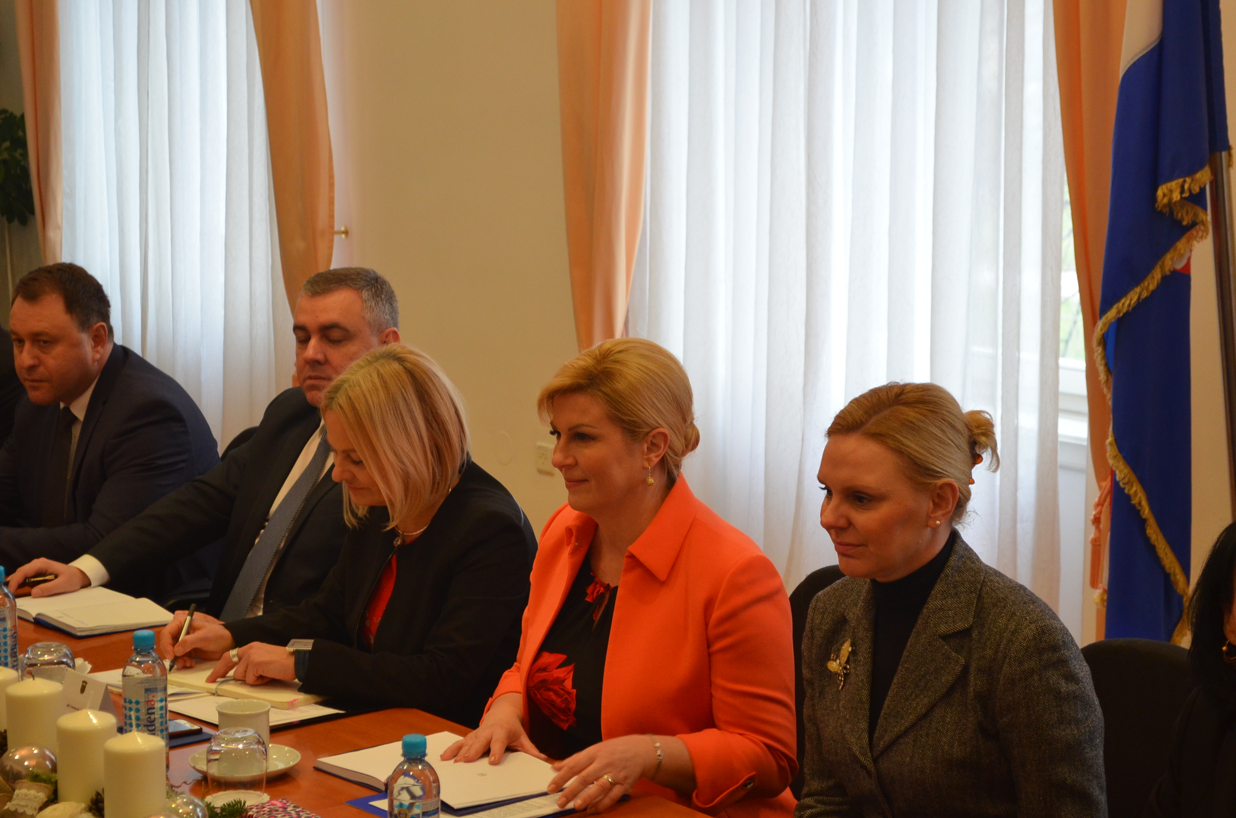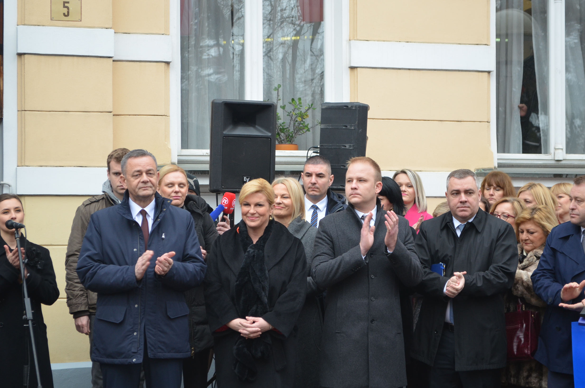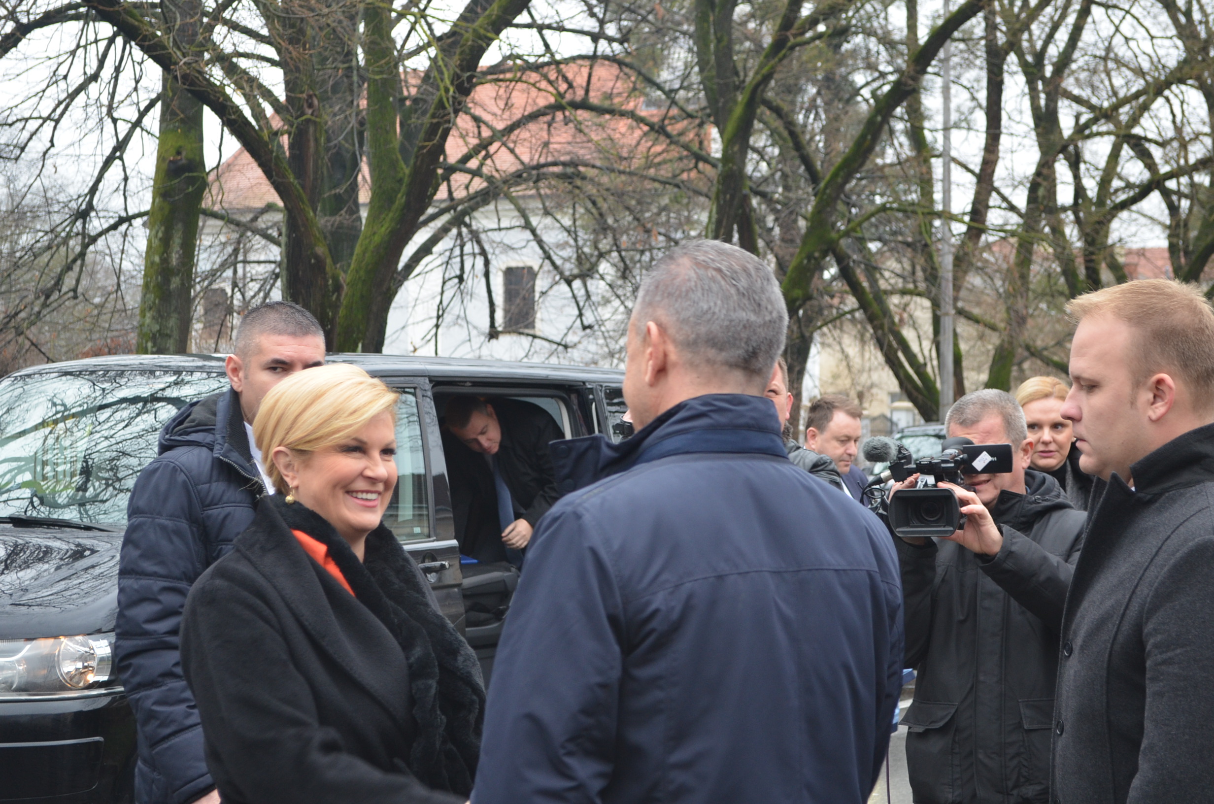 Boravak u Koprivničko – križevačkoj županiji predsjednica Grabar-Kitarović započela je u jutarnjim satima ispred zgrade Županije, gdje je zajedno sa županom Darkom Korenom i gradonačelnikom Mišelom Jakšićem te ostalim uzvanicima prisustvovala podizanju predsjedničke zastave.