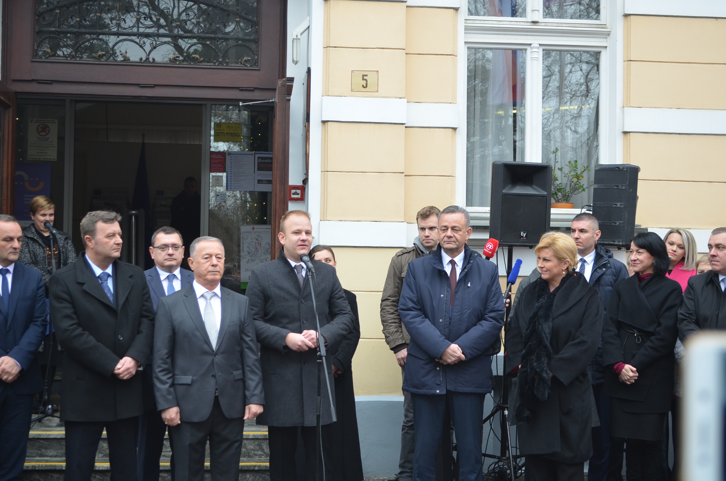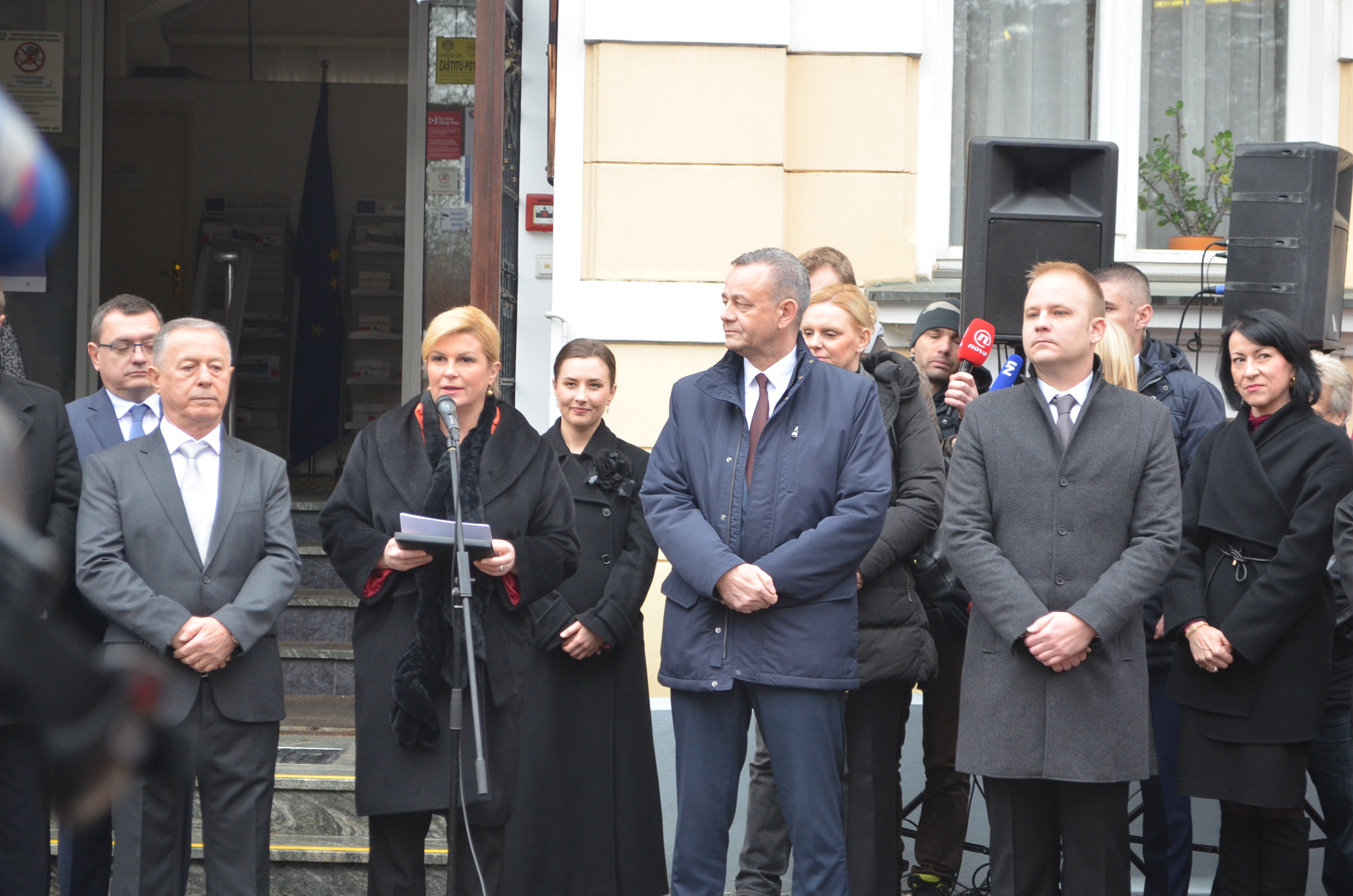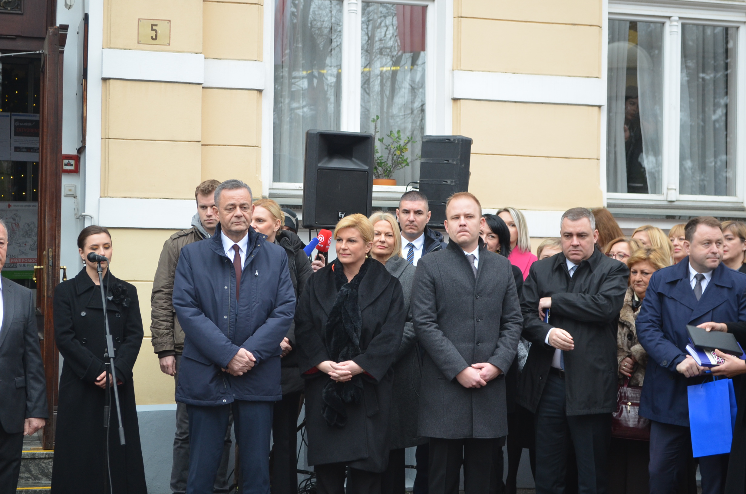 Boravak u Koprivničko – križevačkoj županiji predsjednica Grabar-Kitarović započela je u jutarnjim satima ispred zgrade Županije, gdje je zajedno sa županom Darkom Korenom i gradonačelnikom Mišelom Jakšićem te ostalim uzvanicima prisustvovala podizanju predsjedničke zastave.