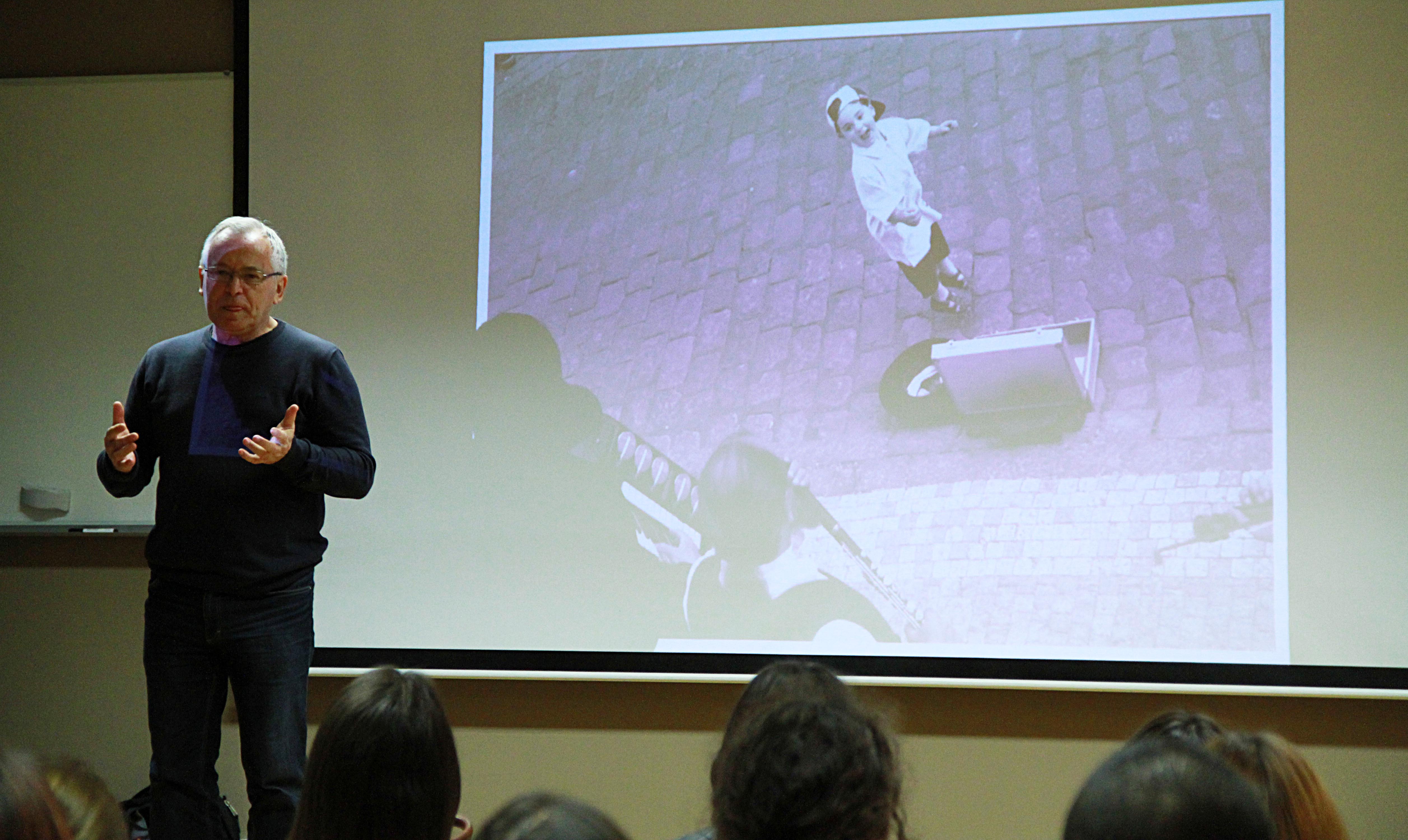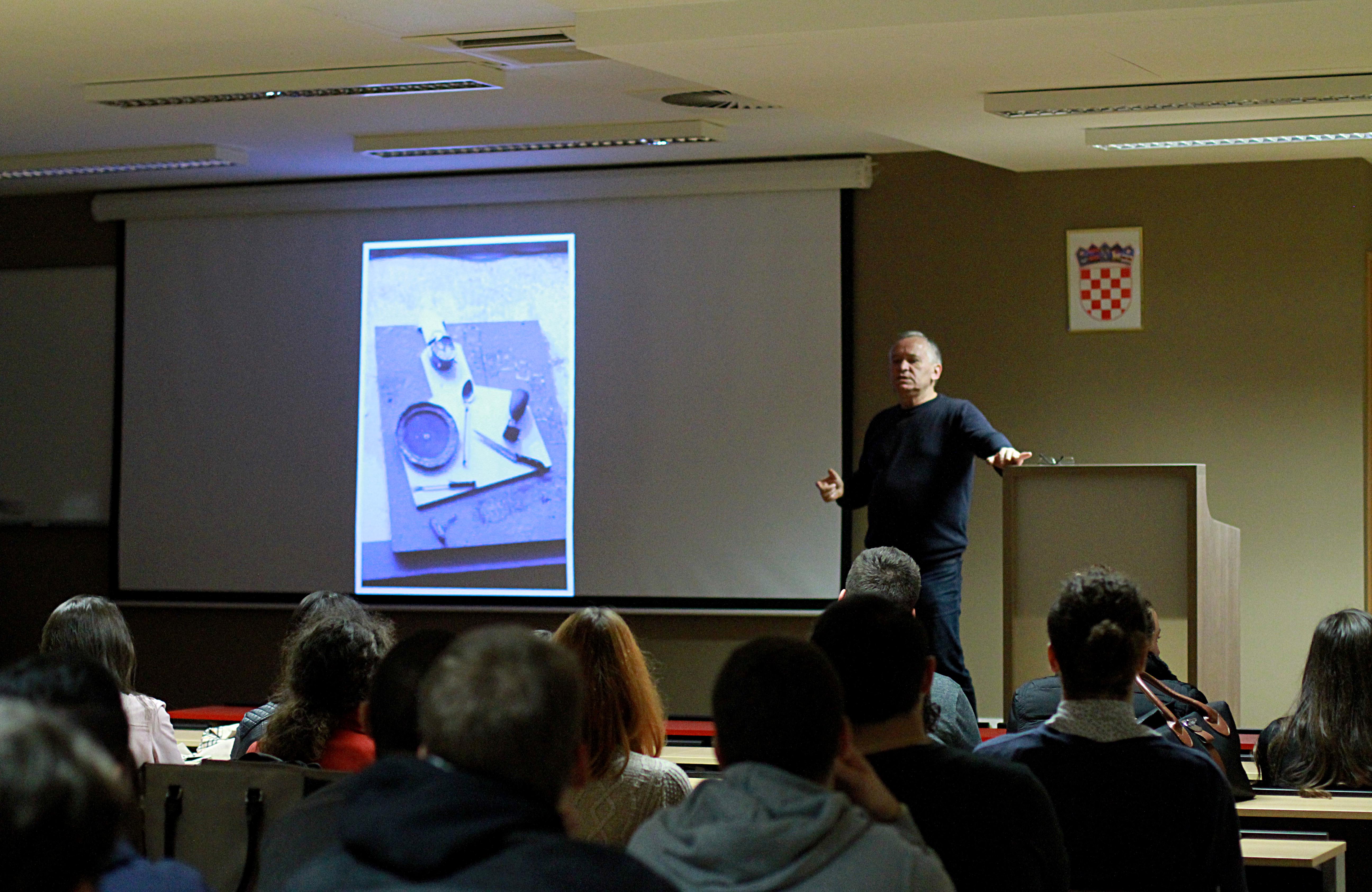 Studentima Sveučilišta Sjever govorio je o svojoj dugoj i plodnoj karijeri. Podijelio je brojne anegdote iz života profesionalnog fotografa, upoznao ih s omiljenim tehnikama rada i svojim iskustvima s problematikom autorskih prava u fotografiji.